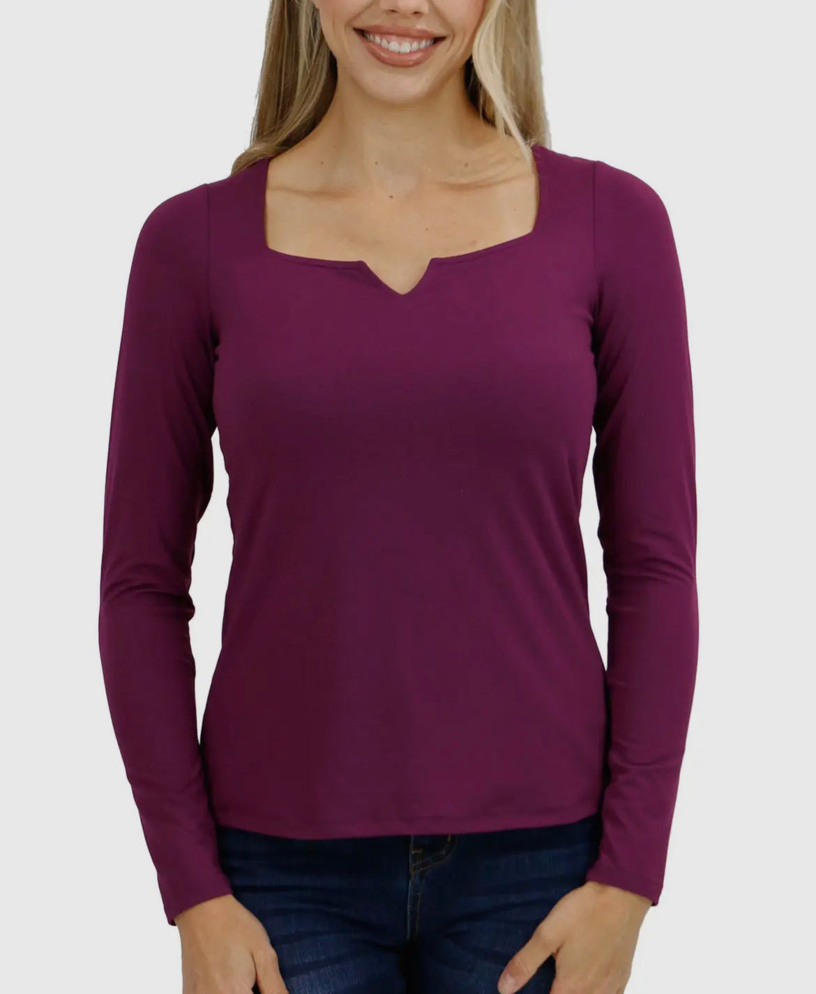 * Ultra soft, long sleeved stretchy square neck top with double layer bodice fabric for a seamless and smoothing fit and feel