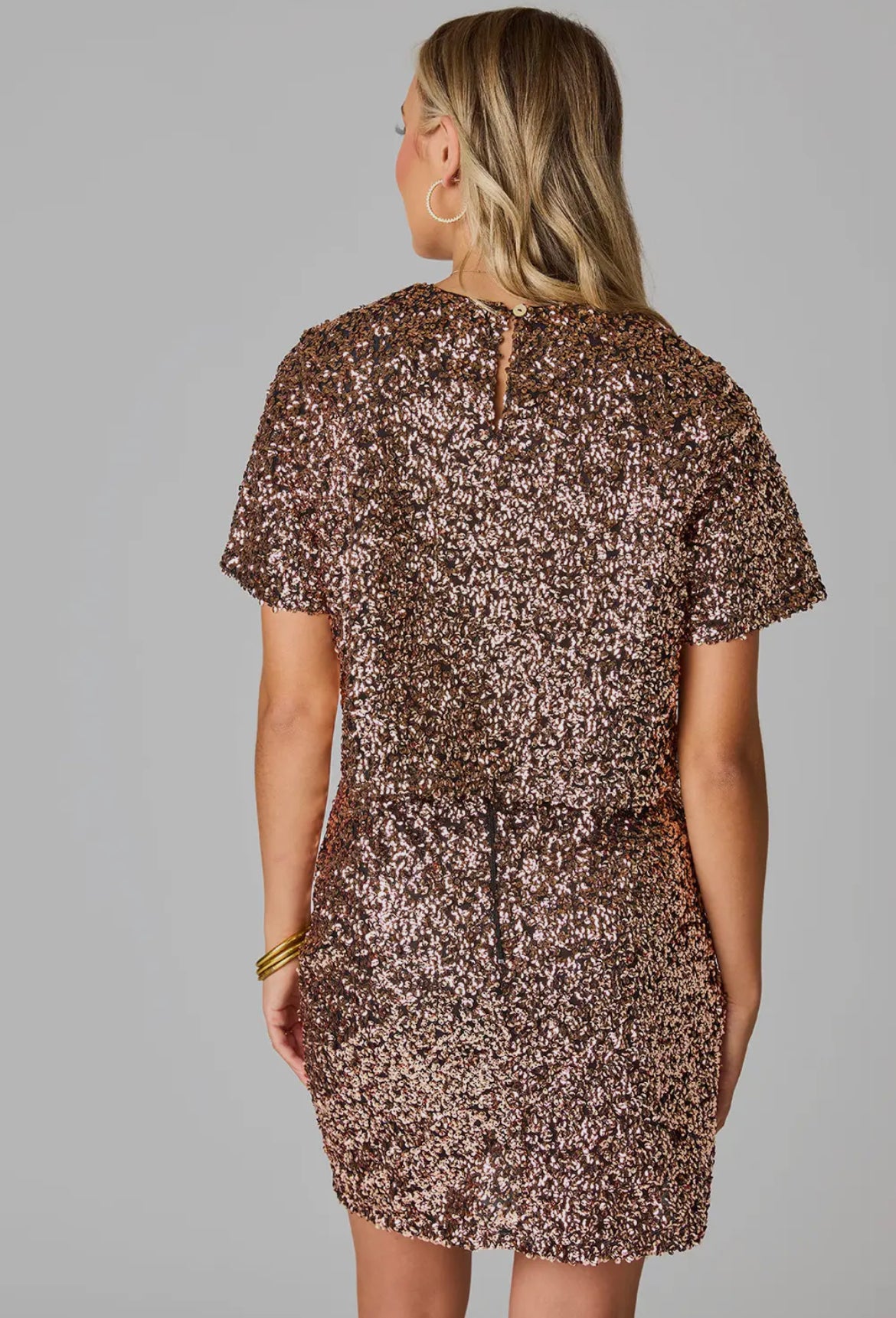 The Spicy Set features a short sleeve sequin cropped top with button closure and sequin mini skirt with a zipper closure. She's perfect for any party or concert you have!